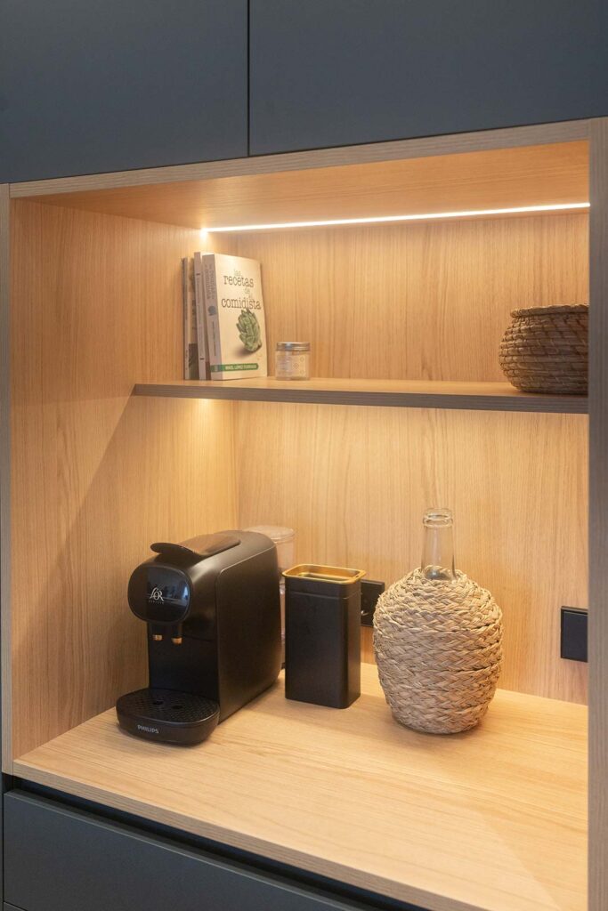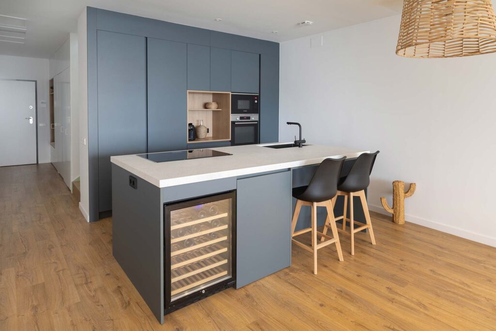 Mención especial a la vinoteca, integrada en la isla y un electrodoméstico en tendencia que permite conservar el vino a la temperatura y humedad ideales. Antes de elegirla, es importante definir su uso: pocas o muchas botellas, zonas de temperatura y necesidades reales del espacio.