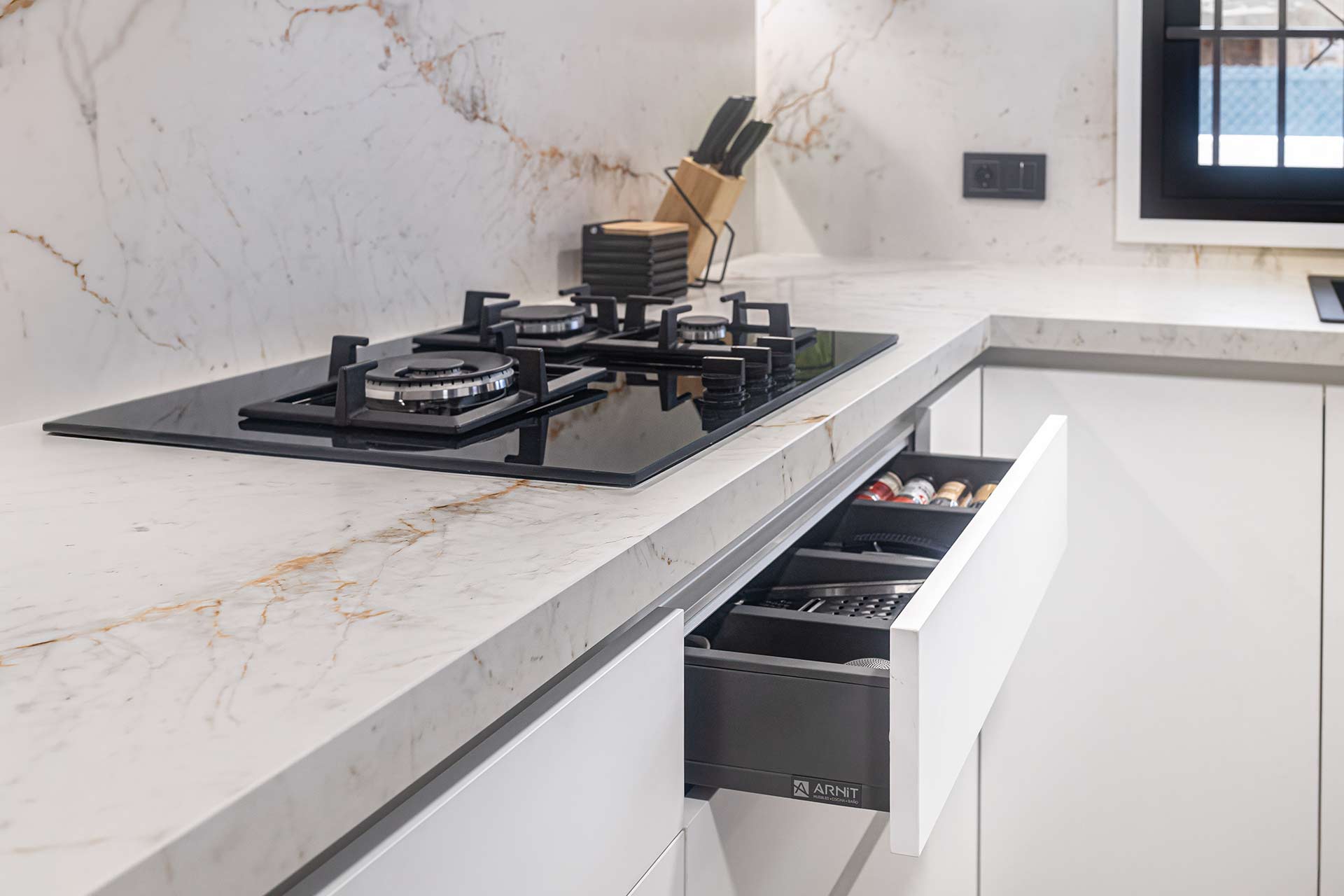 En este proyecto buscábamos una cocina limpia, elegante y muy funcional, donde cada decisión tuviera sentido.